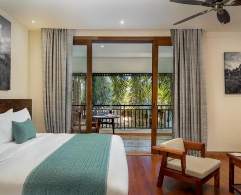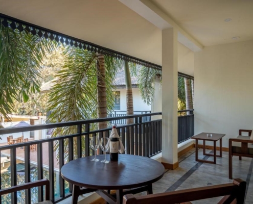 Beautiful cocoon of comfort overviewing the swimming pool, featuring a large balcony with lounge and dining area to enhance your holiday experience.